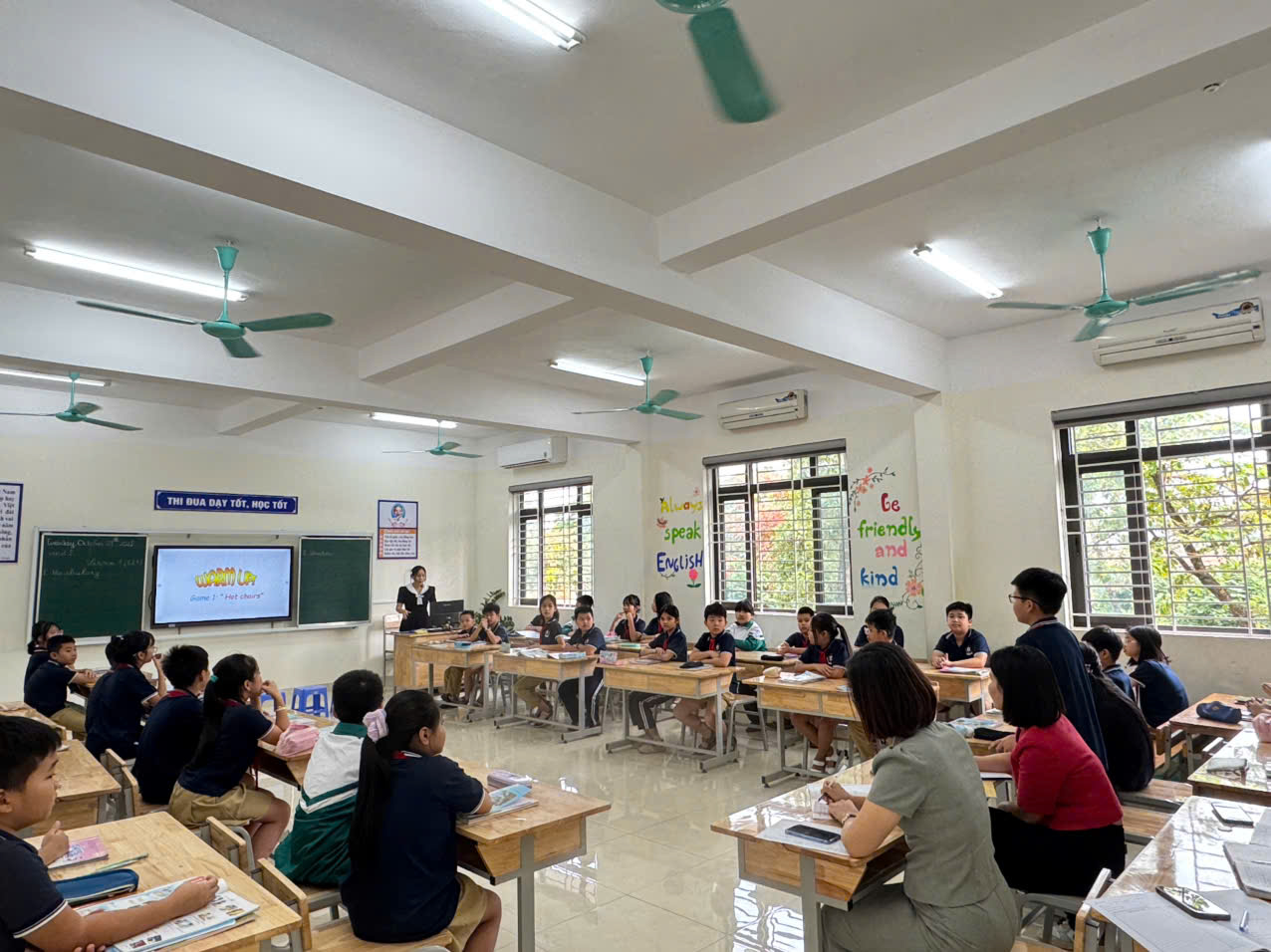 Với việc sử dụng đa dạng hình thức tổ chức như trò chơi ngôn ngữ, hoạt động nhóm, luyện tập giao tiếp, tiết học đã tạo được hứng thú cho học sinh, giúp các em tự tin sử dụng Tiếng Anh trong các tình huống thực tế. Học sinh tham gia tích cực, mạnh dạn phát biểu và hợp tác hiệu quả trong các hoạt động học tập.