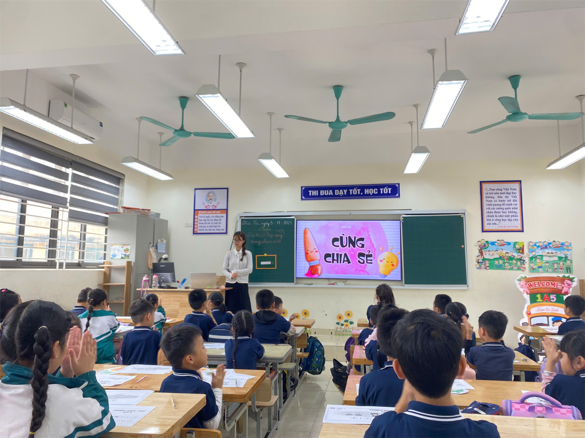 🚀Sáng ngày 5/11/2025 tại Trường Tiểu học Cổ Bi, cô giáo Nguyễn Phương Linh dự thi Giáo viên dạy giỏi cấp trường với tiết Toán lớp 1A5 – Bài: Phép cộng trong phạm vi 10. Tiết dạy nổi bật nhờ ứng dụng công nghệ AI cùng nhân vật đồng hành AI xuyên suốt giờ học: nhân vật dẫn dắt khởi động bằng tình huống trực quan, gợi mở “dấu cộng” và “phép tính cộng” bằng hình ảnh, giọng đọc sinh động. Song song, cô giáo đã triển khai thẻ phiếu học tập ở phần bài tập: học sinh được làm việc nhóm, giá lưu, chia sẻ và giơ thẻ đáp án, giúp lớp học sôi nổi, hào hứng, đa số học sinh nắm chắc kiến thức về phép tính cộng. Tiết học để lại ấn tượng đẹp về một giờ Toán hiện đại, phát huy vai trò trung tâm của học sinh; Các em còn rèn được kĩ năng trình bày – hợp tác nhóm, tư duy suy luận, năng lực và thói quen tự đánh giá sau mỗi bài.