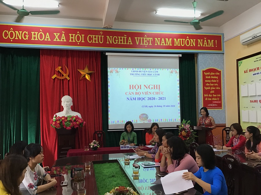 Hội nghị được tiến hành nghiêm túc theo đúng quy trình cấp trên đã hướng dẫn. Tại Hội nghị, các tổ khối, các đoàn thể và cá nhân đã tích cực đăng ký các danh hiệu thi đua trong năm học 2020 - 2021 với 100% cá nhân đăng ký danh hiệu lao động tiến tiến. Tập thể Hội đồng sư phạm nhà trường – Bà Đào Thị Như Quân - Hiệu trưởng cũng đã đăng ký danh hiệu thi đua tập thể của Trường Cổ Bi năm học 2020 - 2021 gồm: Tập thể Lao động Tiên tiến, Liên đội mạnh cấp Trung Ương, Công Đoàn vững mạnh xuất sắc, Trường TTXS về thể dục thể thao... Với tinh thần đoàn kết nhất trí cùng chung tay góp sức xây dựng nhà trường ngày một phát triển vững mạnh, Bà Đào Thị Như Quân đã thông qua Nghị quyết Hội nghị Công chức - Viên chức năm học 2020 – 2021 và được 100% thành viên trong nhà trường biểu quyết đồng thuận.