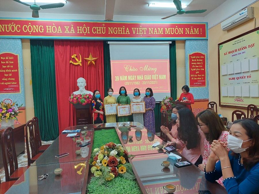 Tham dự buổi gặp mặt Kỷ niệm có đầy đủ các ban ngành đoàn thể, tập thể Cán bộ - Giáo viên - CNV trong nhà trường. Phát biểu tại buổi gặp mặt Kỷ niệm,cô giáo Đào Thị Như Quân - BT chi bộ - HT nhà trường, đã ôn lại truyền thống Ngày Nhà giáo Việt Nam 20/11, những đóng góp của các cán bộ, giáo viên, công nhân viên cũng như các bậc phụ huynh và học sinh đối với sự nghiệp giáo dục và đào tạo, bồi dưỡng lý luận chính trị. Với tinh thần trách nhiệm, tận tụy với nghề, với công tác giảng dạy, nghiên cứu, trong những năm qua, đội ngũ cán bộ, giáo viên đã và đang công tác tại trường không ngừng nỗ lực phấn đấu giảng dạy tốt, nghiên cứu tốt. Cán bộ, giáo viên không ngừng tự trau dồi, rèn luyện, nâng cao trình độ chuyên môn, nghiệp vụ và đã đạt thành tích cao trong giảng dạy, và trên các mặt công tác khác. Năm 2021, trong bối cảnh thế giới và trong nước tiếp tục phải đối phó với đại dịch Covid-19 kéo dài. Nhưng vượt lên tất cả những khó khăn, trở ngại, cán bộ, giáo viên nhà trường đã chủ động ứng phó kịp thời, sáng tạo, hoàn thành tốt mọi nhiệm vụ được giao.