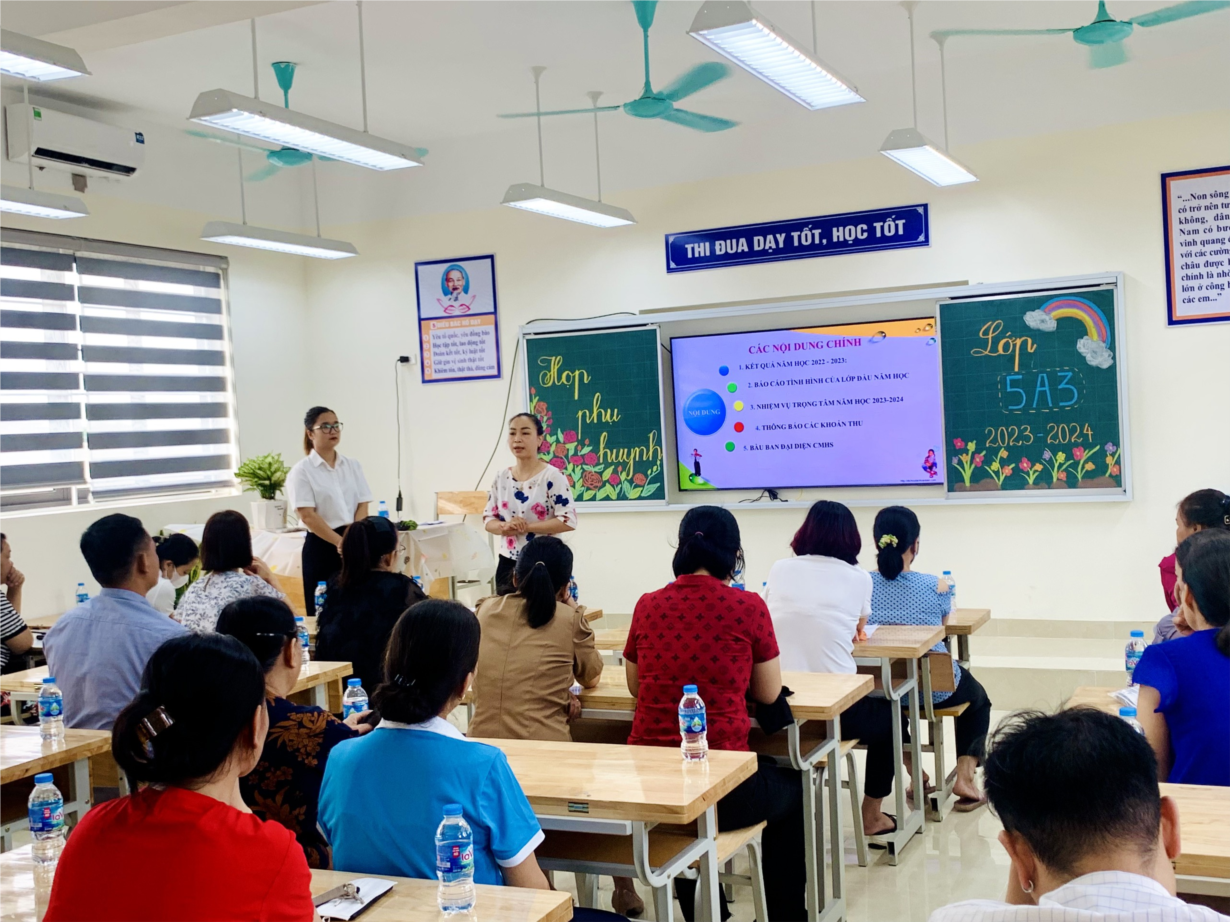 Trong cuộc họp, phụ huynh được giáo viên chủ nhiệm chia sẻ về mục tiêu, quan điểm, các hoạt động giáo dục của nhà trường và mong muốn sự gắn kết giữa phụ huynh, giáo viên chủ nhiệm và các em học sinh trong công tác giáo dục.