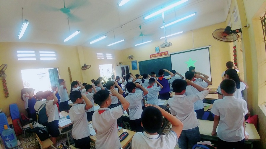 Dưới đây là một số hình ảnh của các con học sinh thực hiện nghi Lễ chào cờ trong lớp học: